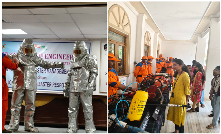 A team of 25 members from the Disaster Response Force conducted live demonstrations and practical sessions, showcasing advanced equipment and rescue techniques used during natural calamities such as cyclones and floods. Students actively participated and gained hands-on experience in rescue operations in river and sea scenarios. They were also educated on safety measures to be followed during thunderstorms, lightning, fire accidents, earthquakes, and train accidents.