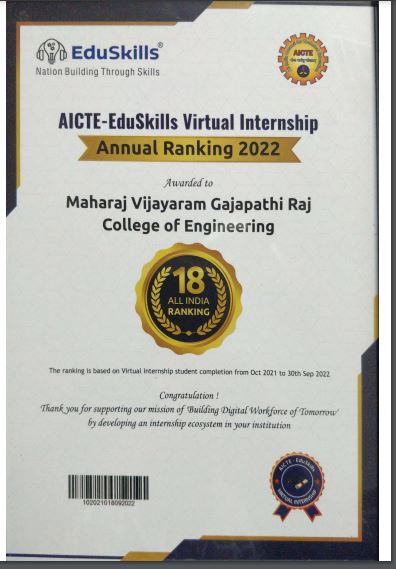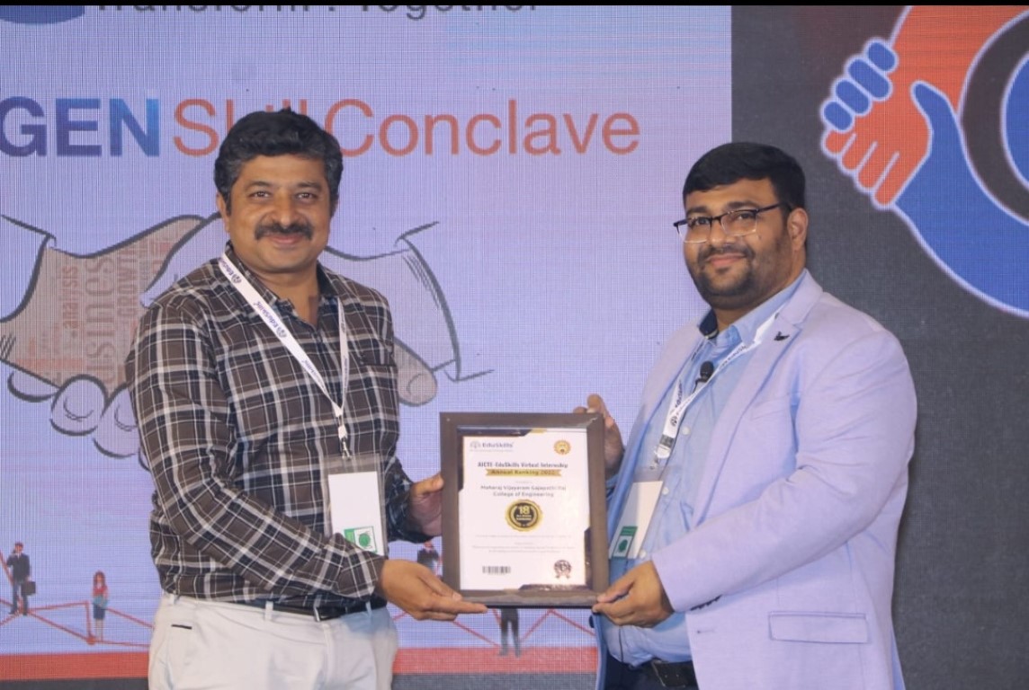 Dr. P. Ravi Kiran Varma, Professor and HoD CSE, Head of EduSkills ISTE CoE, receiving the Award, All India 18th Rank in AICTE Virtual Internships, from Mr. Subhajit Jagdev, CEO, EduSkills, at New Delhi, Dec 23rd, 2022.