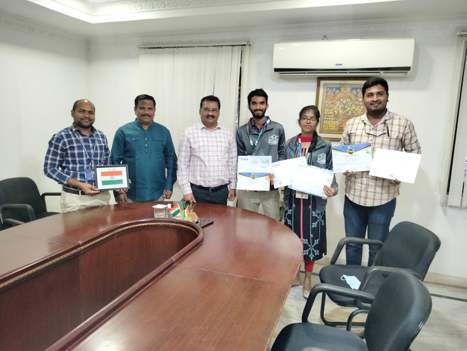 MVGR students actively participated in social development fair, Yuva Kriti, Workshops and Food Festival organized at Karnataka and shared their experiences with the principal of MVGR, Dr. KVL Raju. They showed the participation and appreciation certificates to Principal and he congratulated the students and NSS PO, Shanmukh Rao for representing the district and college in such mega event. He also requested Mr. N. Shanmukh Rao, NSS PO and Mr. S Mohan Kumar, Dean of Students, to encourage more and more students in future to participate in such kind of events/activities.