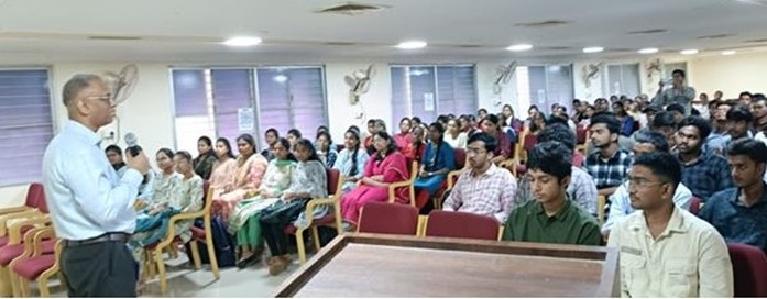 A key highlight was the guest lecture by Shri T. Sivaprasad, an Electrical Engineer with over 40 years of experience in the steel and power sectors. A UGC Fellow and retired General Manager (Electrical), Visakhapatnam Steel Plant, he shared valuable insights on process upgrades, energy efficiency, and global career opportunities.
