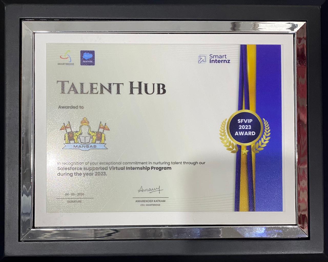 This recognition underscores MVGR's commitment to academic excellence and its dedication to providing students with opportunities for professional growth and success in the dynamic field of Salesforce.