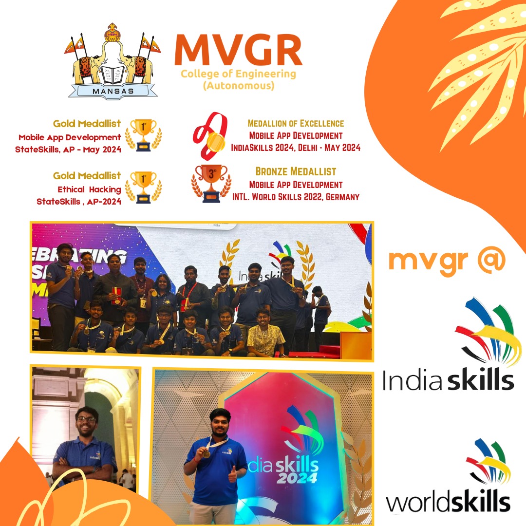 MVGR College of Engineering has demonstrated exceptional talent and skill at the #IndiaSkills and #WorldSkills 2024 competitions, securing two gold medals and a medallion of excellence in Mobile App Development and Ethical Hacking. These prestigious events were held in Delhi in May 2024, showcasing the best talents from across the nation.